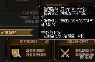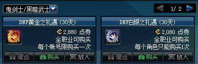 若想要快速做出达到超时空或者泰波尔斯装备的话,商城中上架的DNF黄金、白银礼遇可以让我们更快的从卢克、超时空和强袭模式等副本中获得更多的材料,主助力我们的装备更快成型。