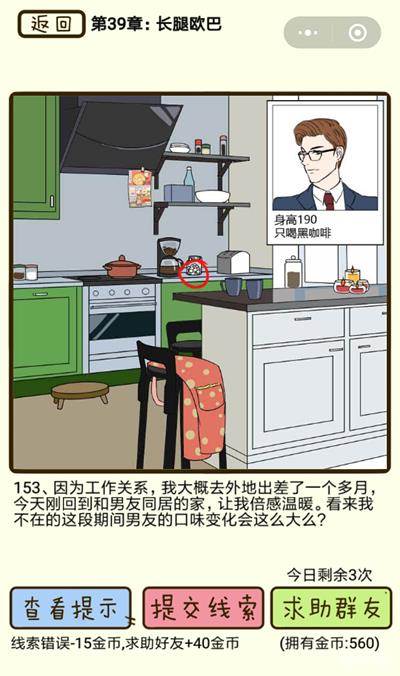 在再见吧渣男手游中长腿欧巴第153关究竟该怎么过呢?在再见吧渣男手游中我们的男朋友是个身高1米9的人,那么它有出轨的嫌疑吗?下面就来看一下吧!