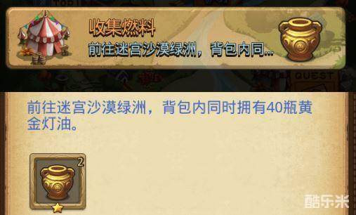 任务要求:前往迷宫沙漠绿洲,背包内同时拥有40瓶黄金灯油。