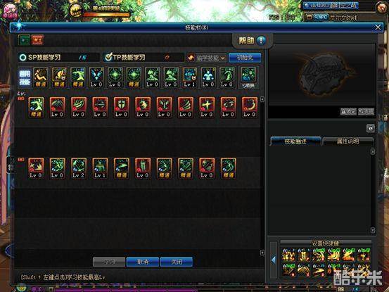 鬼影鞭,CD短,范围大,清小怪不二之选,受到SP受限差5级不能点满,可惜了。