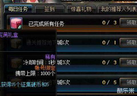 一月二十一号符合该活动条件的回归玩家登录游戏后可以领取回归奖励,然后输入一名玩家的qq账号来开启后续活动,开启后回归玩家会有每日任务和签到奖励,以及每日惊喜礼物,每日任务有四个,只要玩家通关推荐地下城五次就可以完成所有的每日任务,每天完成任务可以获得三十个征集硬币和五个羁绊硬币,惊喜礼物可以开出各种惊喜道具。