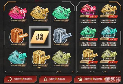 3. 每次转盘会获得随机幸运值,可用以兑换箱子。兑换会消耗幸运值,分解也可获得幸运值。