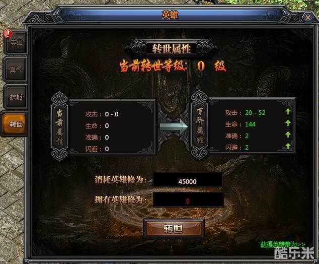 英雄和玩家扮演的主角一样,都是在等级满足了80级之后才能开启的转生系统。一旦英雄等级达到80级,就会和主角一样自动地开启转世的标签卡。成功转世之后的英雄不仅能够继承大幅增长的基础属性,这些基础属性就直接决定了英雄的攻击力,生命值,准确以及闪避。转生的等级越高,这些增加的属性便会越多,英雄战力也会变得越强。