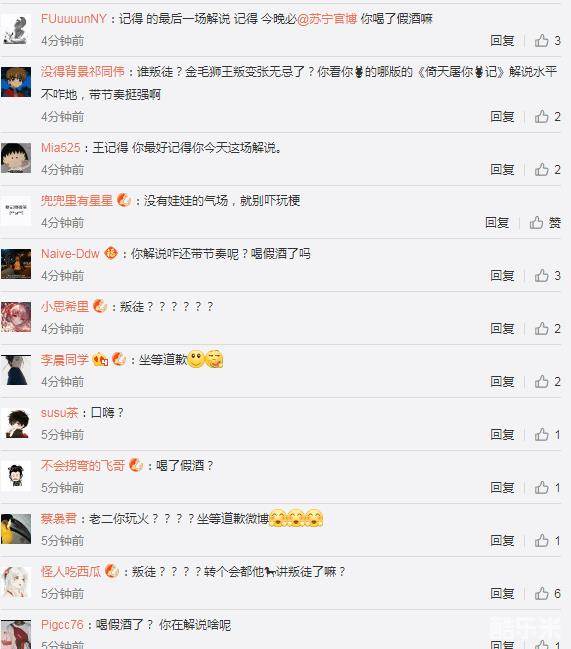 我在此向粉丝们道歉,我知道我在解说中用“叛徒”的用词有所失言,我只是想跟大家讲“金毛狮王”这个梗,没有任何的恶意。马哥是普通的转会操作,我不应该使用这样的发言。再次为我的发言不当向各位马哥的粉丝们道歉。