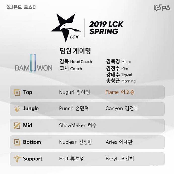 英雄联盟LCK春季赛第二轮名单:Flame重回LCK