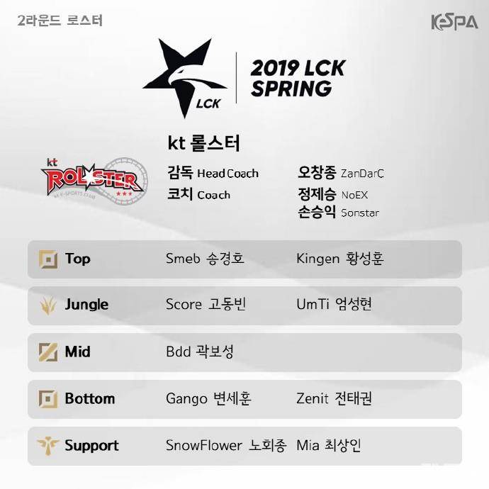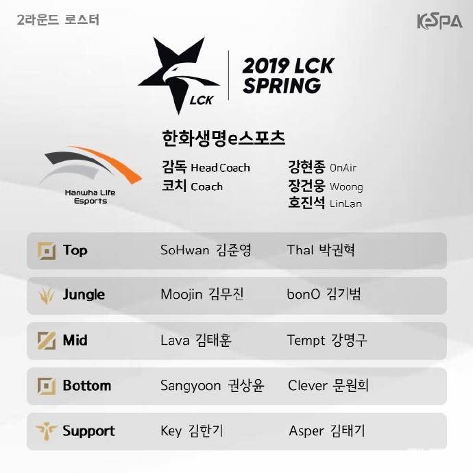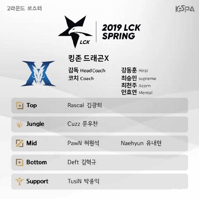 今日,韩国LCK赛区的KeSPA官方推特公布了LCK春季赛第二轮的各大战队阵容名单,其中SB、AFS、GRF和DWG有人员上的增加,其余战队则继续保持原有阵容。