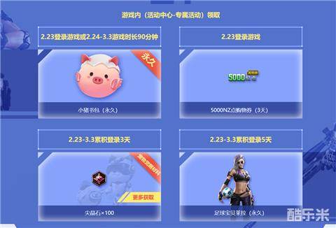 而转眼己亥猪年的春节即将收尾,逆战也是再次放出新活动。玩家在2月23日之后达成对应游戏任务就能领取永久小猪背包、100尖晶石(啊我终于可以把辐射升满了),以及永久的足球宝贝角色和一张5000NZ购物券。