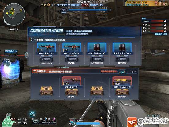 虽然通关很难,但通关奖励绝对值得你付出,图中下面的金色宝箱中可花费300CF点买把钥匙,有几率能开出7天或30天的盘龙,虽然现在六盘很普遍,但在2015年初时绝对很珍贵了。