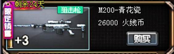 哈喽,大家好呀,我是你们亲爱的小编呦呦,辞旧迎新,在我们CF的火线币商城中在新的一年里可是添置不少的限时好东西,除了各种秘银皮肤的捧场外,还有一款意外的来宾:M200-青花瓷,但是这款M200的狙击枪似乎与我们平时的M200系列的其他武器有所不同哦,不知道各位小伙伴是否已经将这位天外来客抱回自己的仓库了呢?