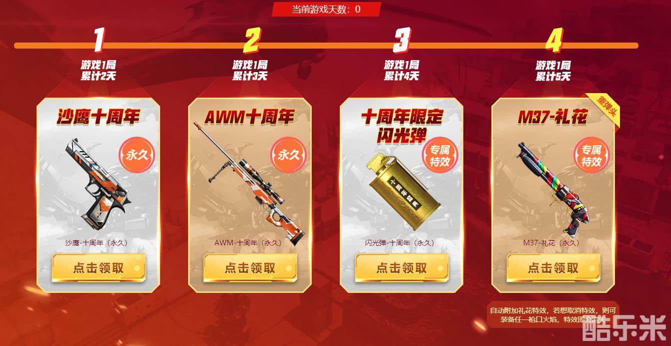永久新版本道具:十周年系列武器(AWM、沙鹰、闪光弹),M37-礼花。