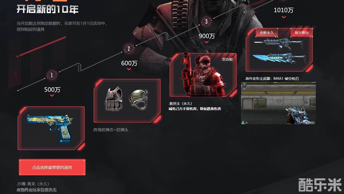 永久新版本道具:十周年限定角色:龙野-X、AK47-B-十周年。