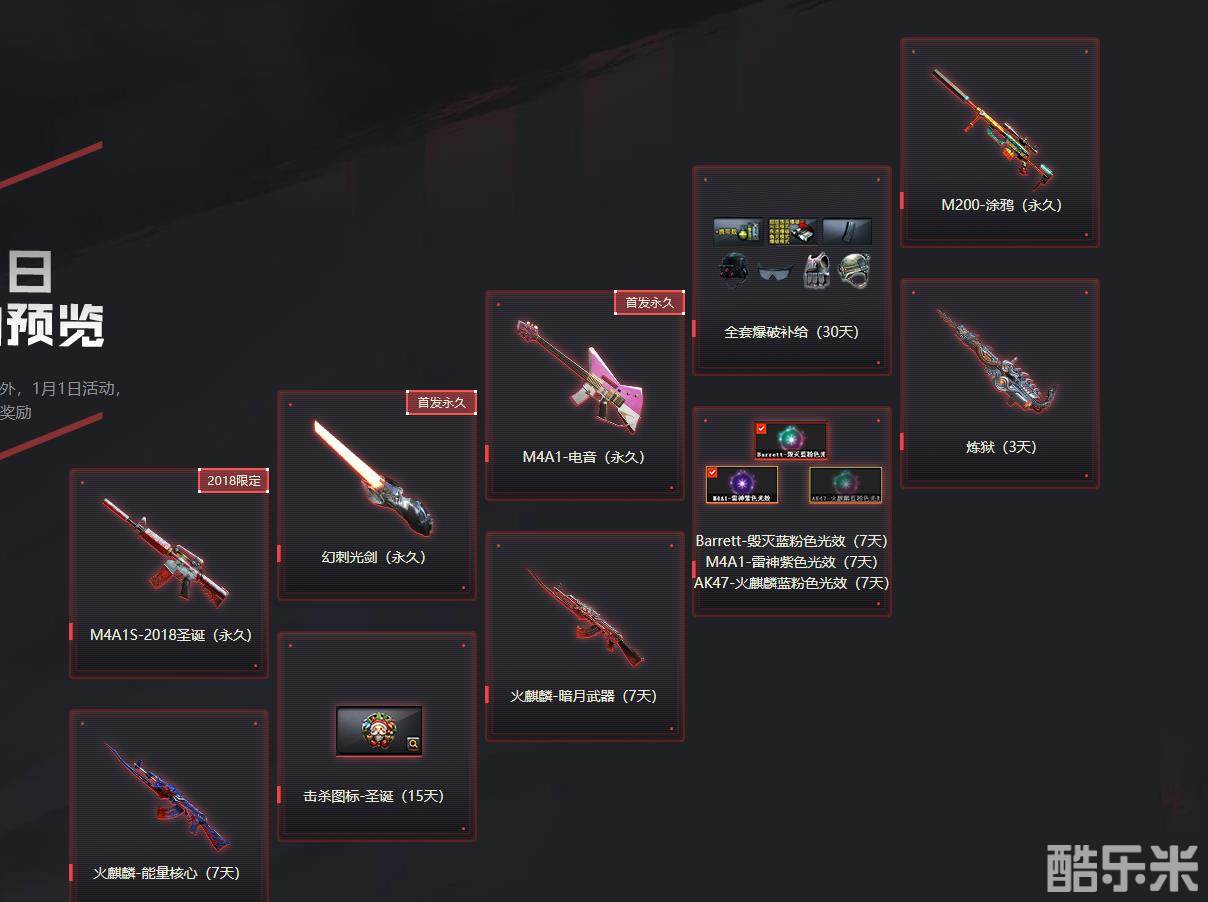 我们火线年底的活动力度也是挺大的,救世主和破空枪刃作为12月活动福利之外,更有M4A1-电音,以及幻刺光剑两款武器的永久期限到来。可以说,也是一个满满惊喜的十二月。