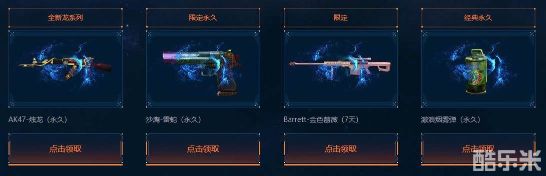 全新永久奖励:AK47-烛龙、沙鹰-雷蛇。
