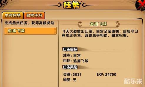 当你打败飞天大盗之后,就会传送到须弥山,并完成悬赏任务。记得点击一下榜单领取奖励。