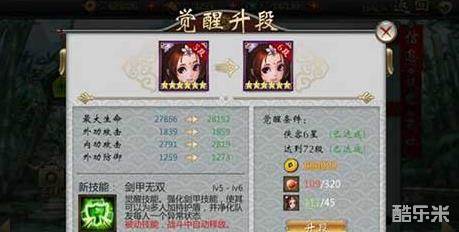 侠客升到5星并且等级达到55级后可以消耗500个觉醒丹和15万铜钱来觉醒侠客,觉醒后侠客属性提升,并且开启觉醒技能。