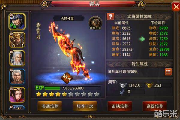 每个神兵都可以镶嵌宝石,玩家可以根据武将属性的特点,以及策略性的需要,随时进行宝石的镶嵌和更换;