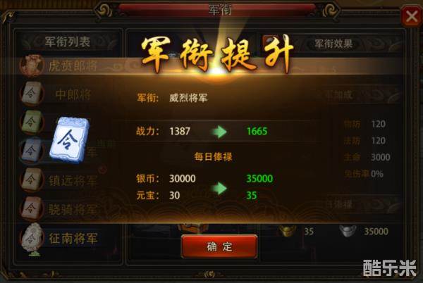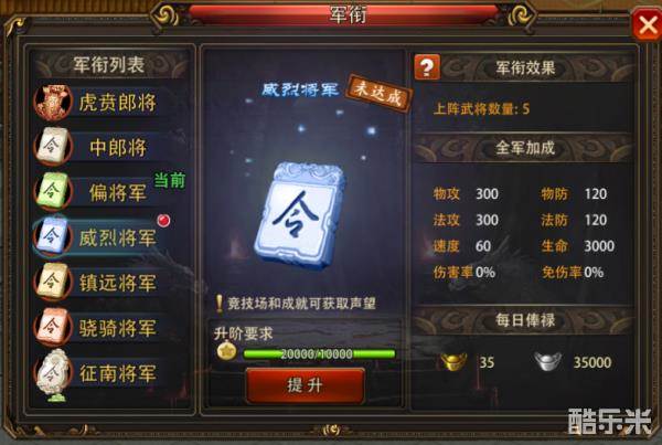 其次,军衔可以对全体武将提供各种属性的加成,增加战斗力评分;