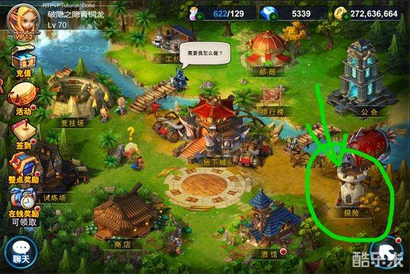 探险任务开启后,可以从基地右下角的探险塔进入,如下图:
