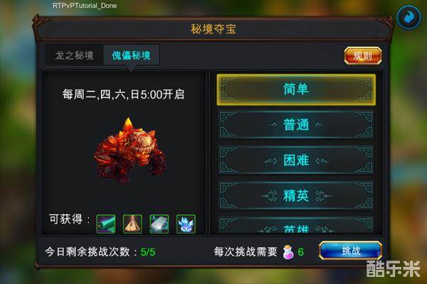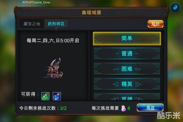 小提示:由于每天的挑战次数是有限制的,建议大家选择可以挑战的最高难度打,失败了不消耗次数,因此可以多次挑战,实在打不过再选择一些低难度的打,就不会白白浪费次数了。