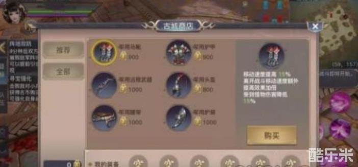 击败敌方人员、小兵和野外游寇可获得特殊货币—古币,使用古币可在聊天栏左侧的临时商店里兑换临时的特殊战场装备(不与实际装备冲突),穿戴装备后可获得额外属性,但最多可兑换6件特殊战场装备。