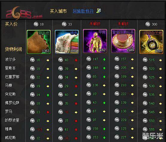 由于很多商品在初期都是解锁的状态,所以,玩家需要不断积累资金以便解锁更高品质的货物,品质越高才能获得更高的收入。在解锁商品时玩家注意有选择性的解锁,一般解锁利润较高的,因为解锁越高品质的货物需要的银币越多,在银币有限的前提下还是选择利润高的为好。