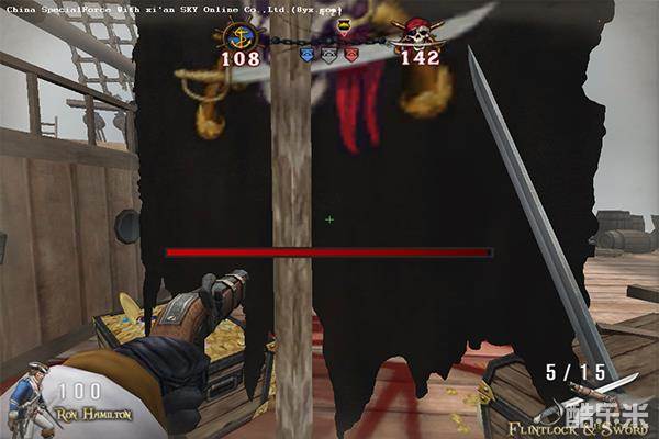 游戏伊始,对战的玩家分为两个阵营:海盗和皇家海军,双方可通过抢占地图上的战旗据点,获得游戏积分。占领的据点越多,就有可能出现奖励宝箱,宝箱中装有特殊武器-狙击火枪,可以远距离狙杀敌人。短枪和狙击火枪相互配合,一长一短,长可攻,近可守。摆脱距离太远而不能用手枪的尴尬,千里之外取敌首级。
