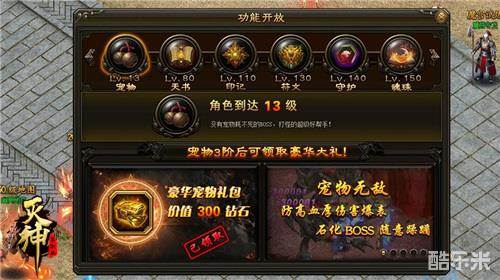 细心的小伙伴不难发现,在页面的左侧有一个隐藏的非常隐蔽的图标,这就是传说中的“功能开放”。只要达到特定等级,就可以领取其中的福利大奖,不同的材料礼包,每个都价值300钻,而且全部免费!所以小伙伴们,赶紧策马加鞭升级吧!
