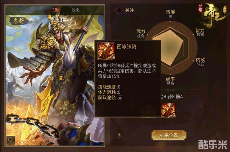 除了新武将,特殊名将的特殊专属新技能同样倍受玩家关注。《梦想帝王手游》3月1日公测即将上线的新技能包括锦马超的西凉铁骑、王安石的变法、霍去病的冠军侯、李世民的士气高昂等等。其中,马超的新技能“西凉铁骑”实乃铁骑神技:所携带的铁骑兵冲撞突破造成兵力6倍的固定伤害,且部队生命增加15%;而王安石的新特殊技能“变法”可以使其担任太守时,将税率上限提升至60%,可以大大提高钱币收入。