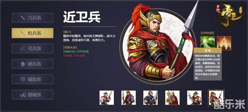 《梦想帝王手游》拥有34类兵种,34类兵种间的克制关系犹如一张庞大的关系网,有兵系间的克制,比如枪兵系兵种克制骑兵系兵种,也有个别兵种间的克制关系,比如骑兵系里的巡逻骑兵,不被枪兵系克制,反而是克制骑兵系。兵种的丰富程度,极大地增强游戏的策略精度,带来最刺激的体验。