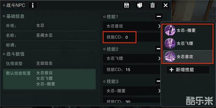 怪物,即战斗npc。可自定义的内容有外观、名称、称谓和战斗数值。主动攻击或非主动攻击,技能的内容与CD都可以自行调节。