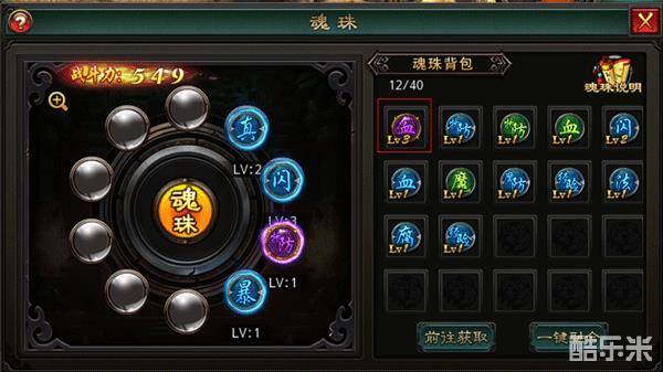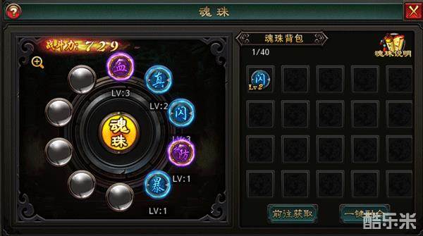 在魂珠槽上装备不同的魂珠以获得不同的属性加成。