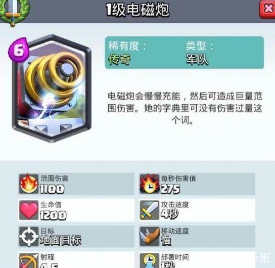 《皇室战争》电磁炮能力评价 传奇卡电磁炮强度分析