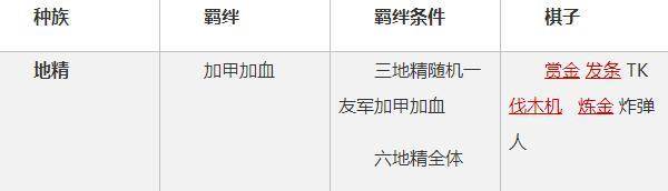 我们来看地精的种族特性。3地精使随机一友军护甲15回血10,6地精全体地精护甲15回血10。这是地精种族的核心,前期看脸,如果羁绊加到了除了TK以外的地精or前排单位都是血赚,让自己前排的强度大大增加,拿下对手不在话下,这也是前期让你产生自己似乎天胡的错觉。