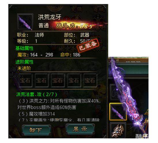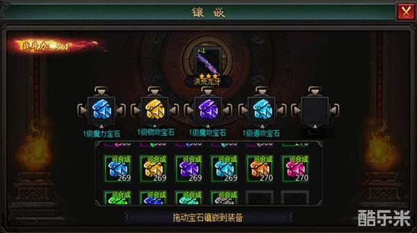 不同等级的装备只能镶嵌对应等级的宝石。