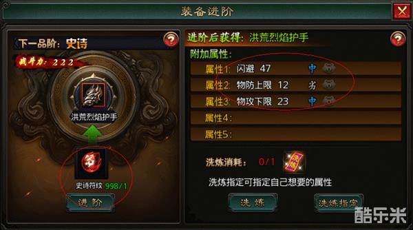 每件装备最多进阶5次,激活5条附加属性。