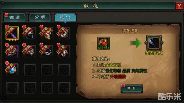 进化后的装备继承原有装备的强化等级,品质与洗炼属性,但是不继承升星数。