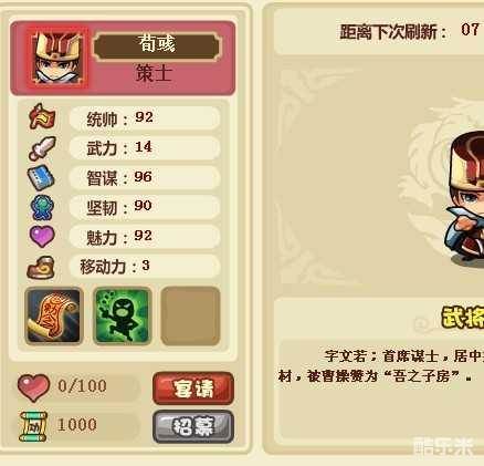 三国战将貂蝉/荀?属性图解 貂蝉/荀?招募花费
