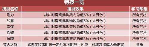 传奇装备“太平要术”限制为武将张角专属宝物,其他武将不可使用哦!"耐力"、"战意"、"奇谋"、"铁壁"、"屏障"、"黄天之怒"等特技功能现暂未开放!