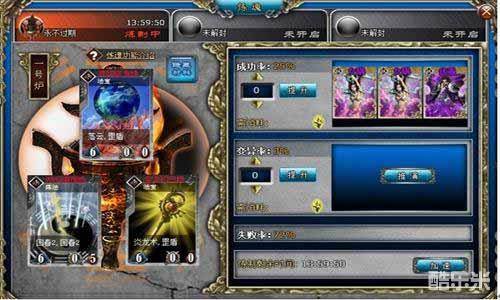 现在我们来炼化神级卡牌——橙色卡牌。到这个阶段3800灵石的基础成本跟8小时的炼制时间就算是浮云了。因为一旦失败,3张紫卡的成本对非人民币玩家那是致命的打击,特别是小编这种爱钱如命的人。52%的成功率看上去坑爹,其实提升到80%也只需要104仙石,而得到的则是一张仅次于红卡的橙色卡牌,这还是很划算的了。