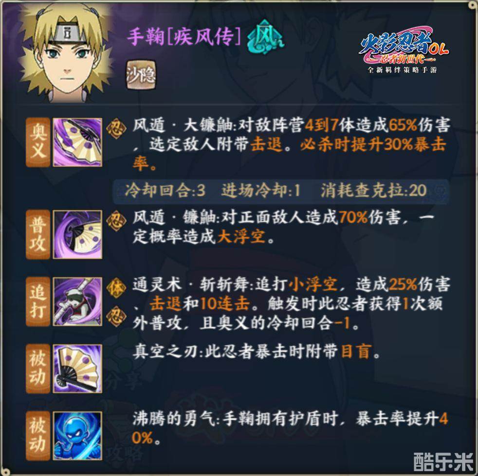《火影忍者ol手游》手鞠疾风传技能介绍