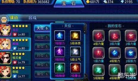 然后小V跟大V的区别基本就是宝石了,小V的话,建议每个都合到5级,当然不是一次性合,如果没那么多,就慢慢升,比如你都是3级的能刚好带满,就先带3级的,然后再抽了又有3级的就合1个4级,慢慢往上合,毕竟你带2个3级的比带1个4级宝石加的要多。宝石的带法如图: