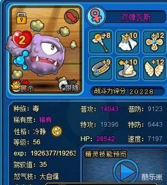 宠物精灵王双弹瓦斯怎么样?宠物精灵王双弹瓦斯属性: