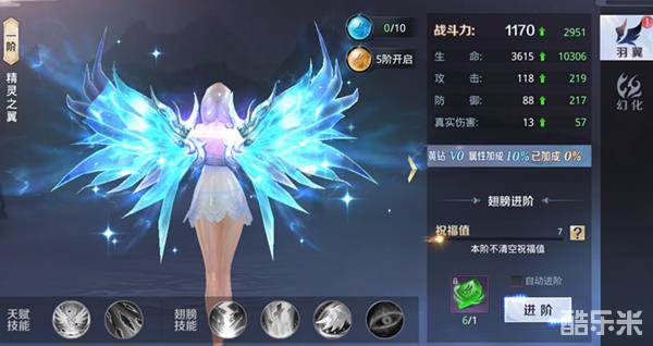 2阶翅膀:激活破空一击,攻击时有概率对目标附加攻击力12%的额外伤害,无视防御效果