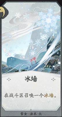 造成2点伤害,将一张雪球加入手牌 | 在战斗区召唤一个冰墙 | 消灭一个眩晕的式神 |