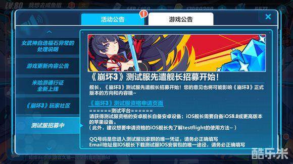 崩坏3测试服3.0资格怎么申请。崩坏3rd3.0测试服的资格申请已经正式开始,那么舰长们如何参与本次测试服呢,接下来小编就给大家带来本次测试服的申请方式。