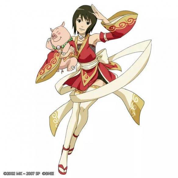静音召唤出一只巨大的金猪储钱罐,从天而降砸飞敌人。随后,静音使用查克拉刀将金猪储钱罐打碎,同时击退敌人。