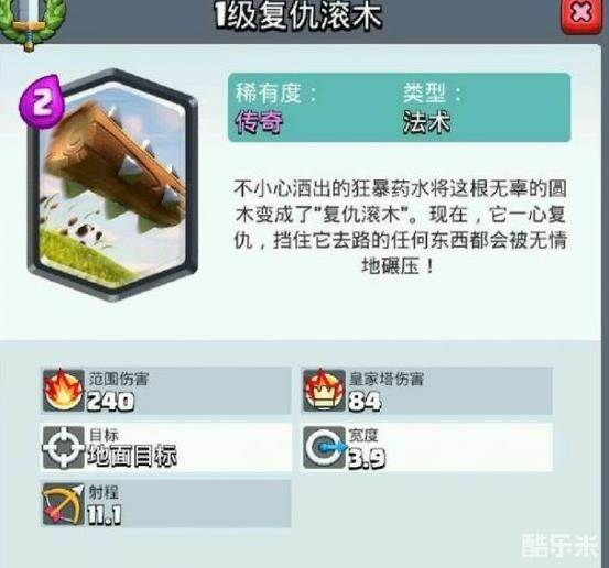 皇室战争中目前共有10多张传奇卡,大部分的传奇卡都是相当给力,在一套卡组中的地位至关重要,下面就让小编来为大家介绍一下传奇卡复仇滚木吧。
