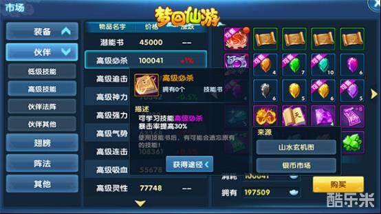 技能可以通过洗髓的时候,随机增加技能数量。也可以通过银币市场购买伙伴技能书来进行学习不同的技能。在学习技能时,其他技能都有可能被顶掉。不同的伙伴搭配上合适的技能,会使其如虎添翼。