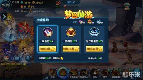 每打过三关,游戏会有一次消耗星星选buff机会,玩家可以再次静静地思考一下之后的作战策略。这里,小编我建议大家可以选择加攻击和治疗效果,而且后面还有可能会出现复活队友的效果。Buff好是好,但就是需要的星数比较多,所以有这个需要的话,玩家可以保留足够的星星博一下!!