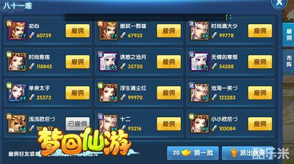 雇佣伙伴,可以选择自己想要的伙伴来协助自己挑战闯关。